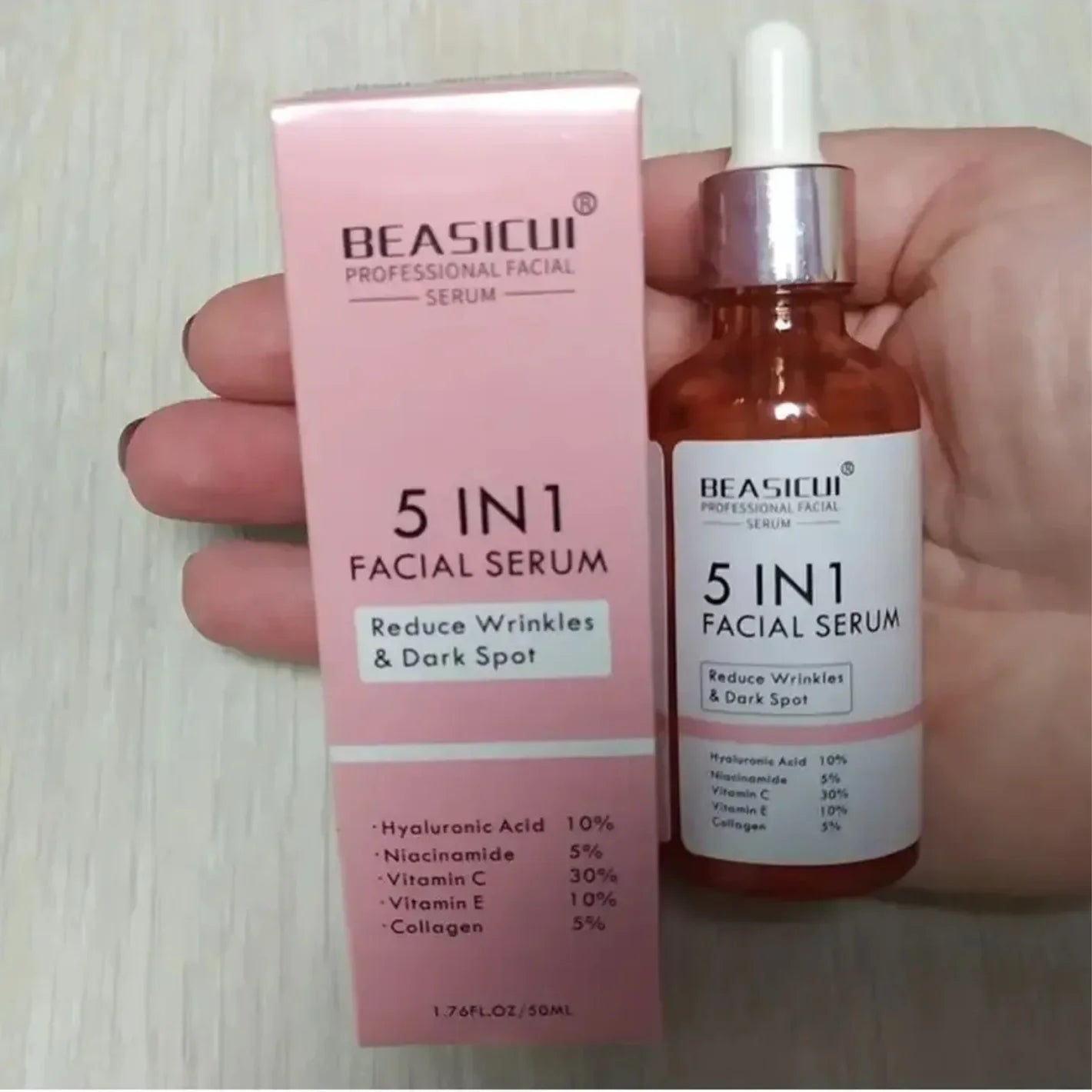 هو سيروم علاجي وتجميلي مركز للوجه، يجمع بين خمس وظائف رئيسية في تركيبة واحدة: الترطيب العميق، التبييض، شد البشرة، مكافحة التجاعيد، والتفتيح. صُمم خصيصًا ليعطيك إطلالة نضرة ومشرقة، ويوفر لك عناية متكاملة دون الحاجة لاستخدام منتجات متعددة